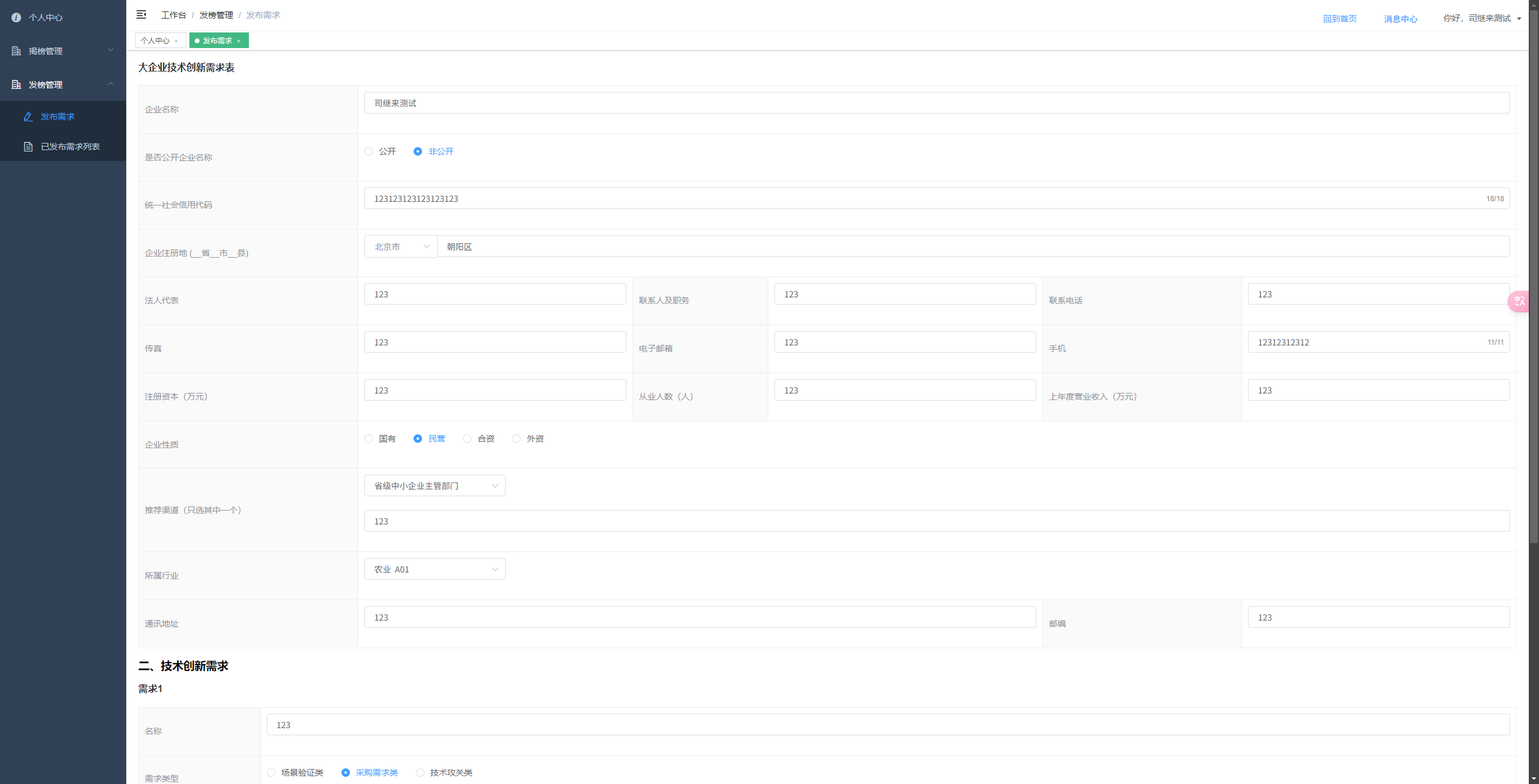 二、登陆后,跳转至《大中小企业融通创新平台》